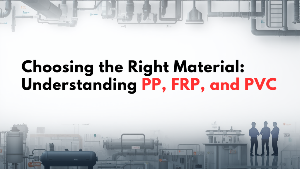 Choosing the appropriate type of plastic for industrial manufacturing like chemical storage, exhaust pipes, or water treatment, is one of the most important aspects of safety, durability, and cost. Three different types of plastics will meet these functions: polypropylene (PP) , fiber-reinforced plastics (FRP) , and polyvinyl chloride (PVC) . Each type of material provides both advantages and disadvantages.